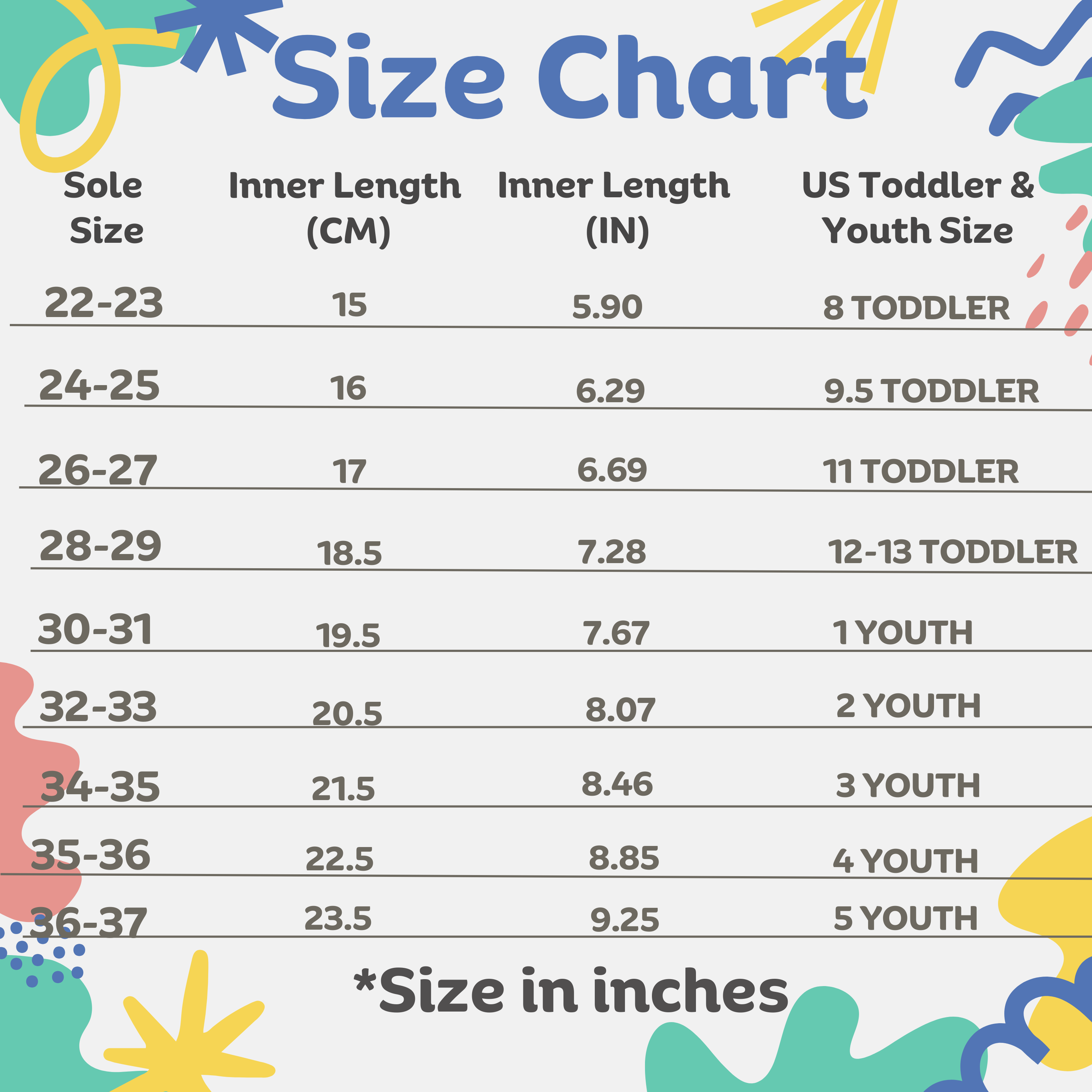 Size:12-13, 1, 2, 3, 4, and 5