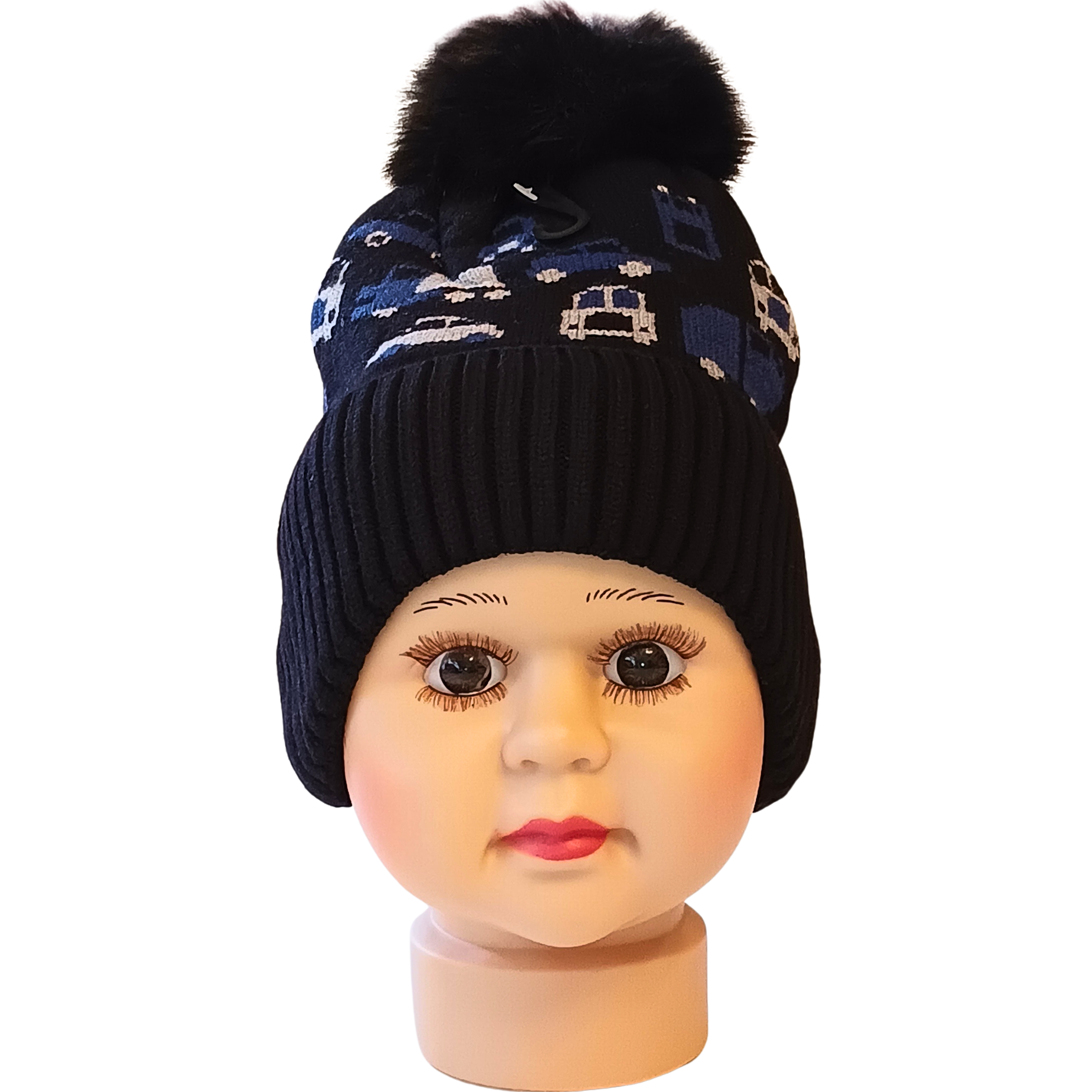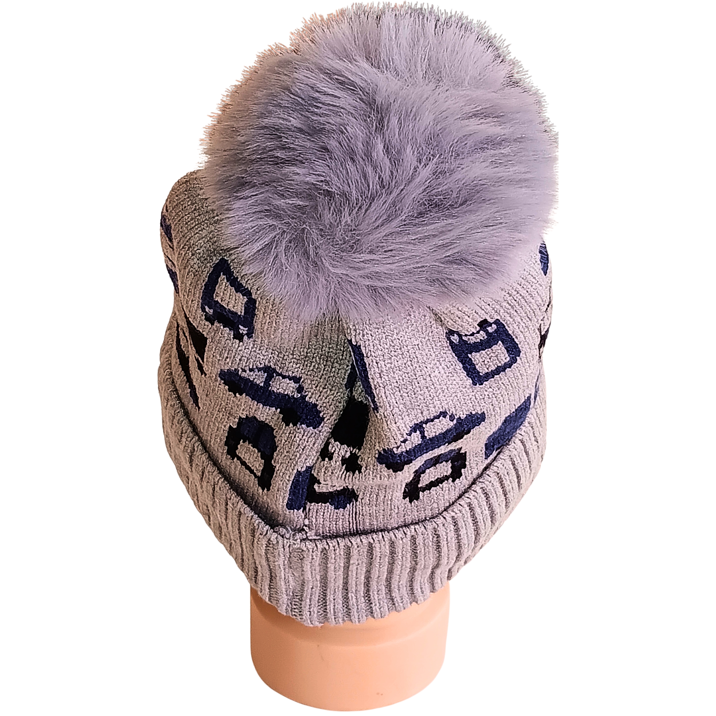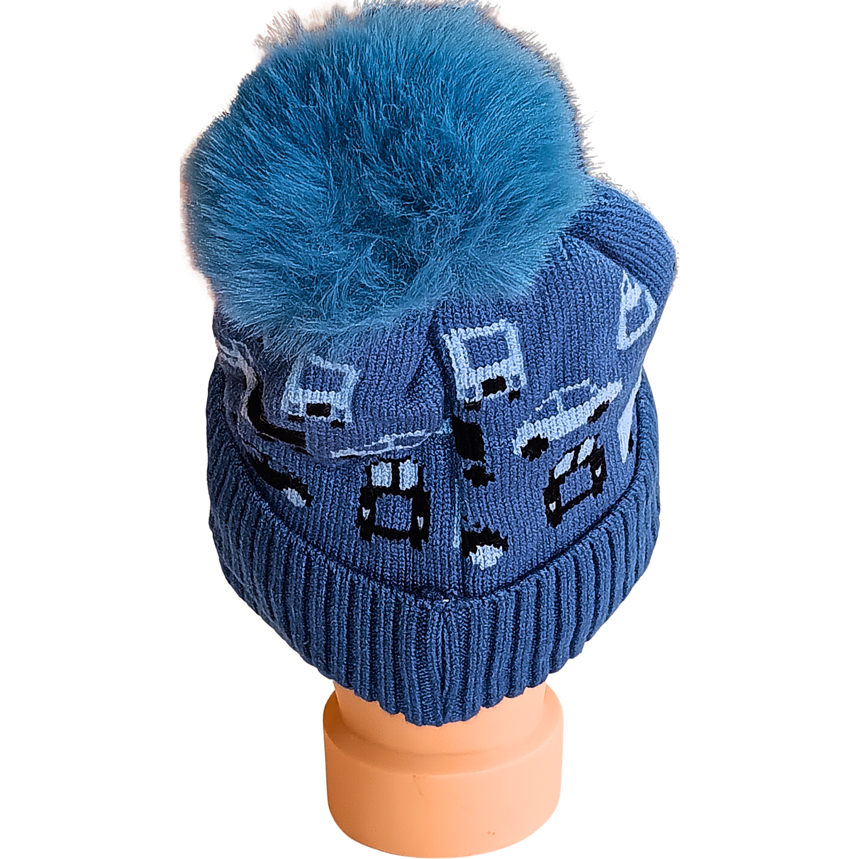 - High-Contrast Vehicle Pattern: The eye-catching knit design showcases different cars and trucks in contrasting colors (like the white, black, and light blue on the Navy hat), stimulating visual interest and imagination.