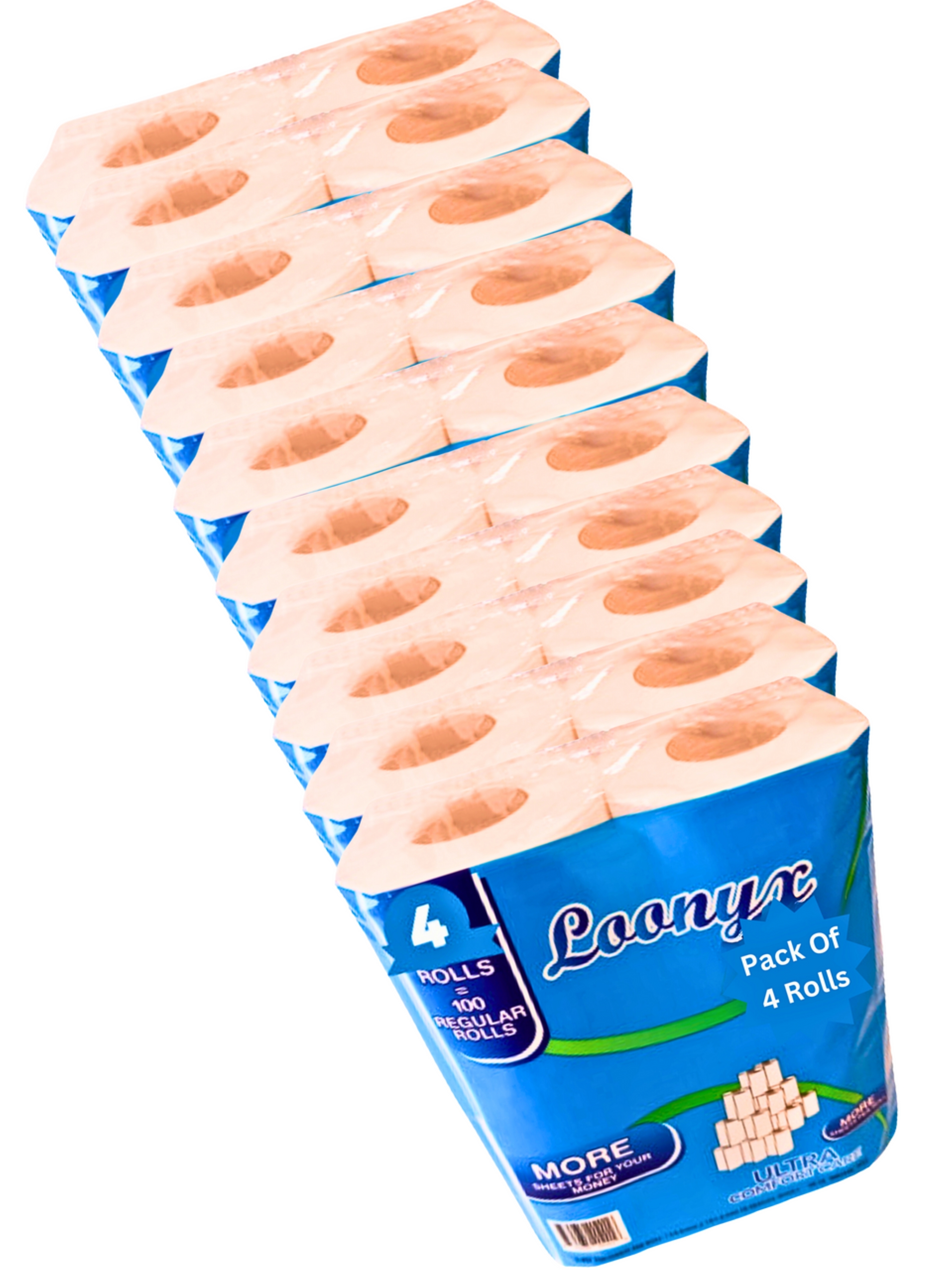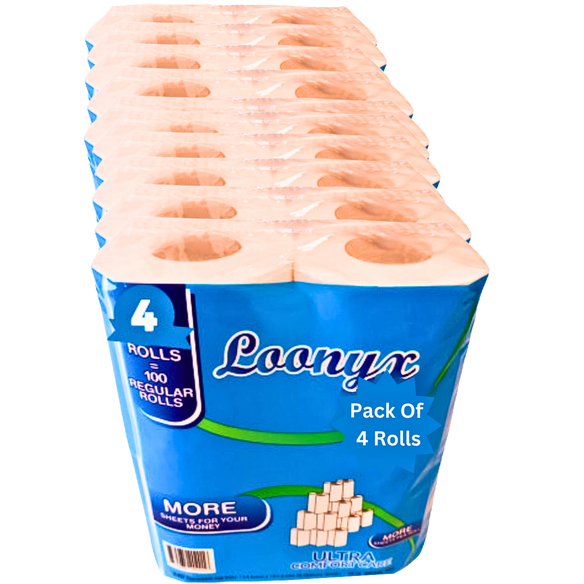 Discover long-lasting comfort with Loonyx Ultra Comfort Care Toilet Paper. Each pack includes 40 rolls (200 sheets per roll) for a total of 8,000 sheets, providing a sufficient supply for your household.