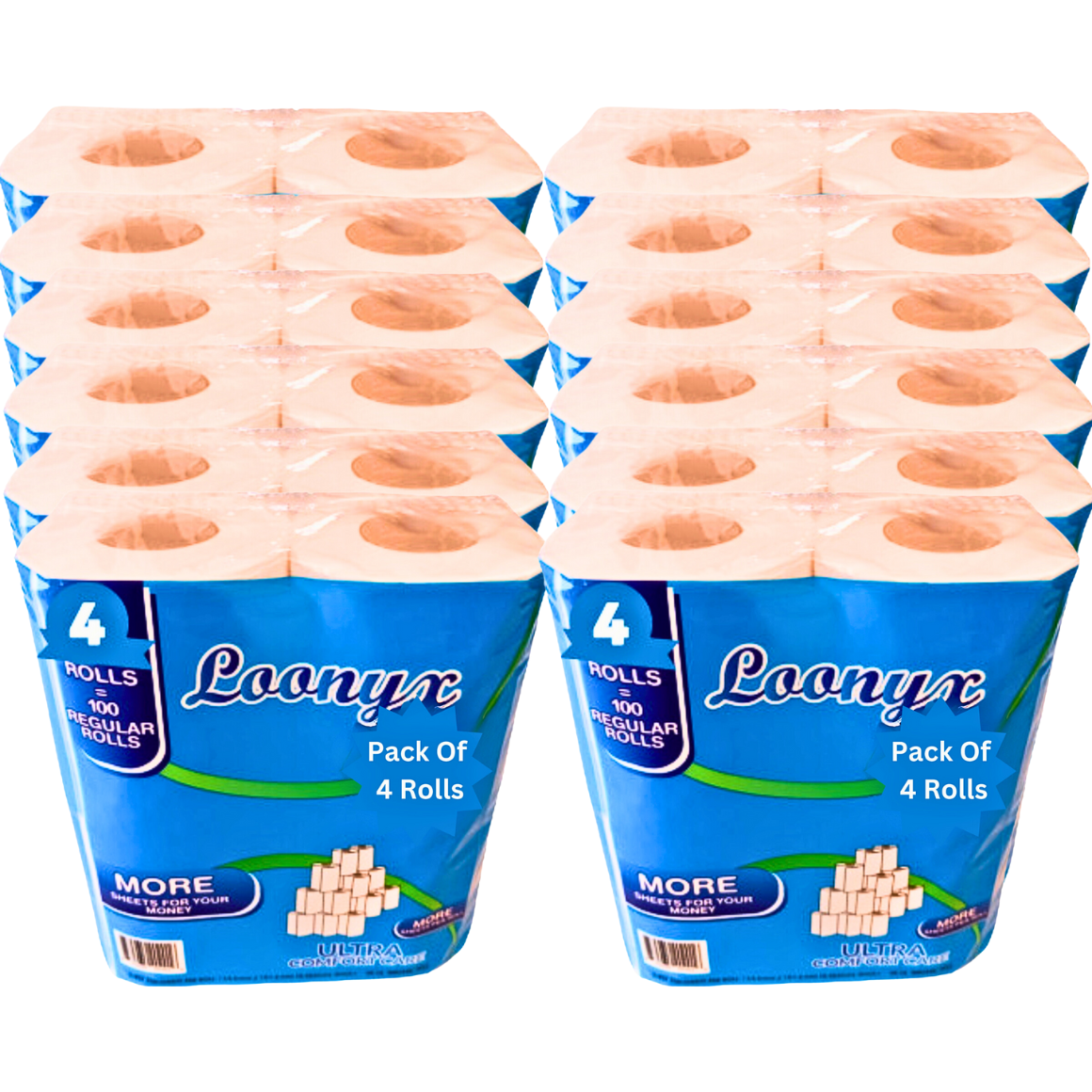 Bulk savings, delivered. Each box contains 12 packs of 4-roll packs, offering exceptional value. Stock up and save with Loonyx bulk toilet tissue!