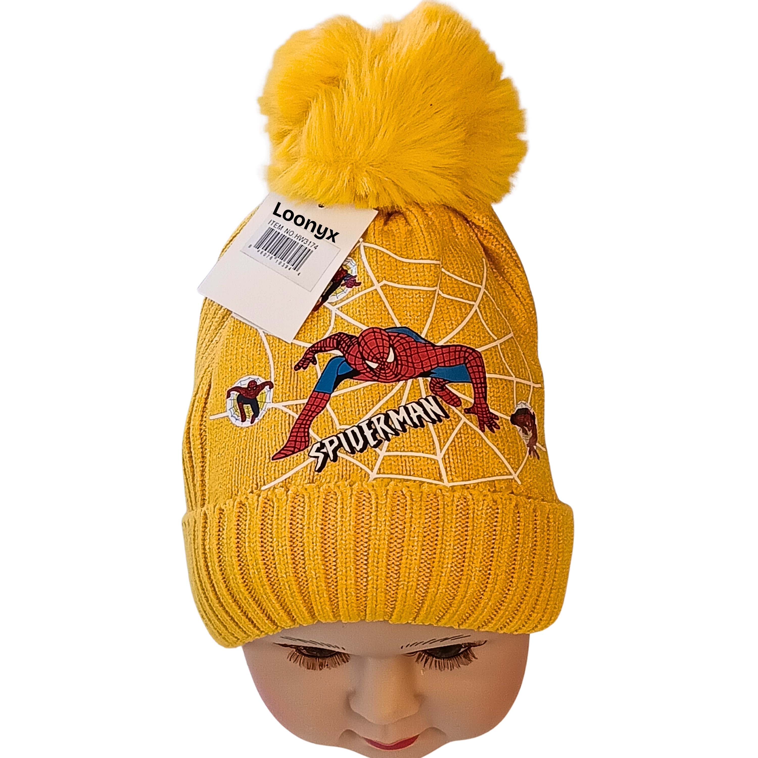 Featuring a vibrant, high-quality embroidered graphic of Spiderman catching villains in his signature web, this hat is an instant favorite. The design is complemented by a fun, fluffy faux-fur pom-pom top that adds a classic winter flair.
